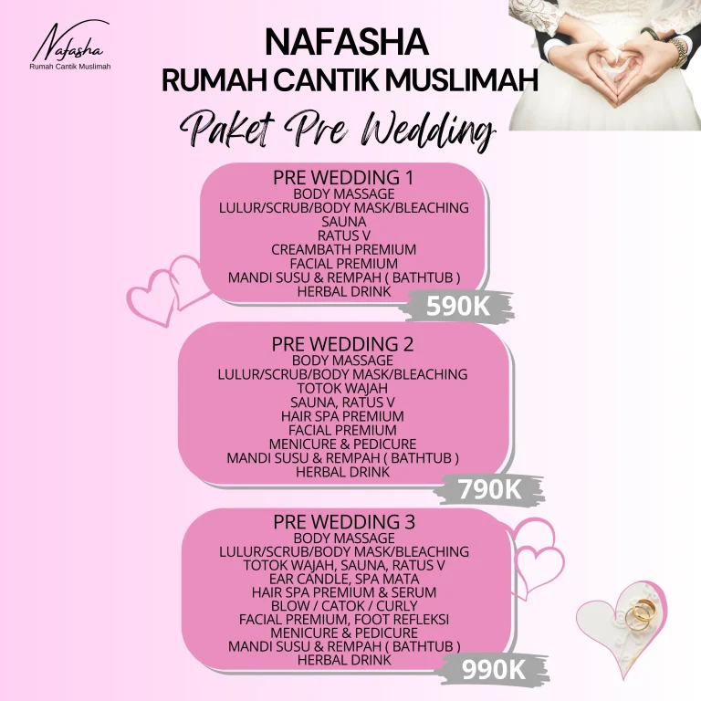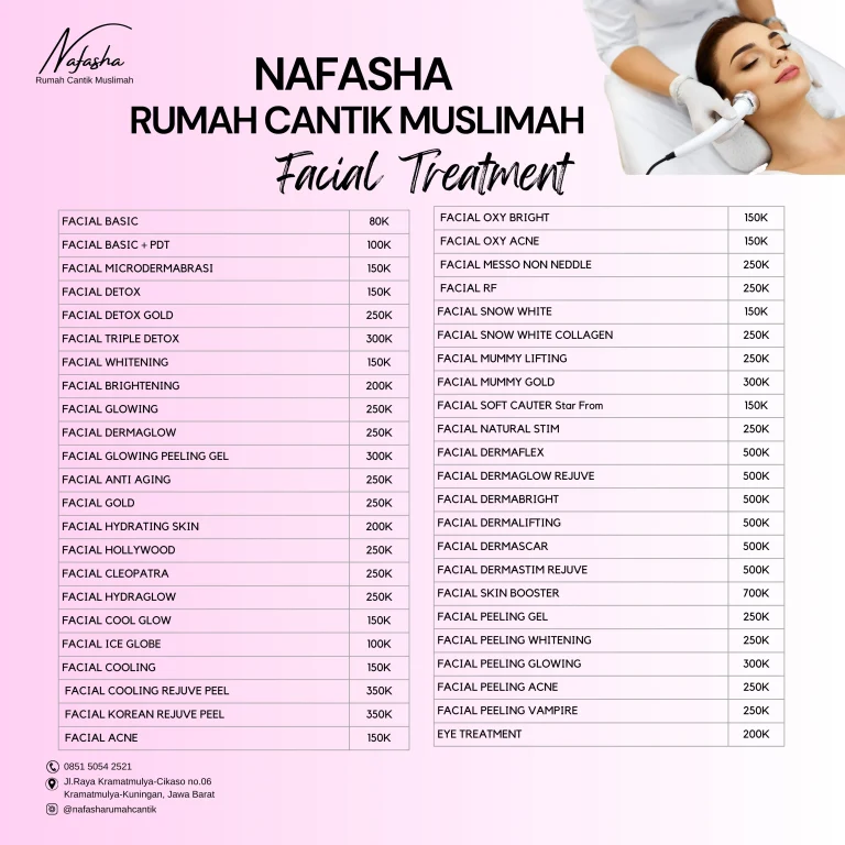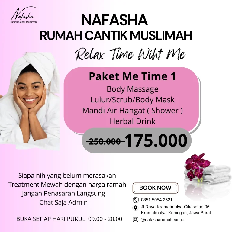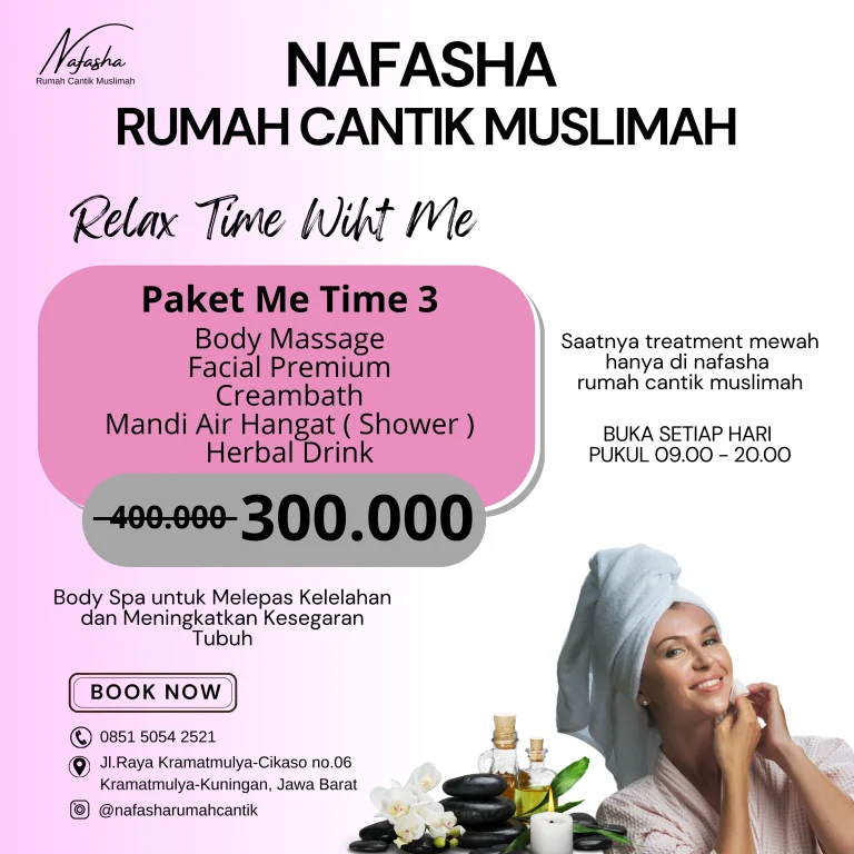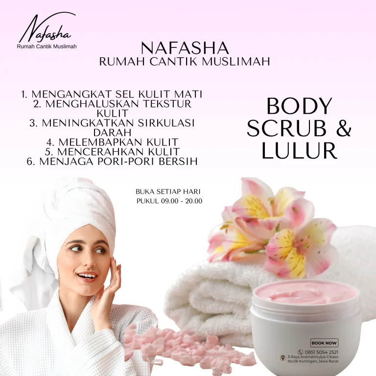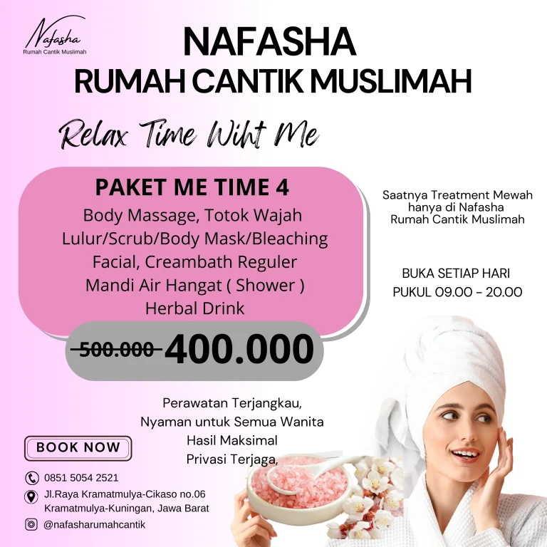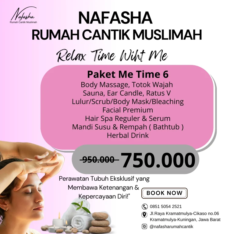 Di Nafasha Rumah Cantik Muslimah, kami memahami pentingnya perawatan diri yang menyeluruh dan alami. Setiap layanan kami dirancang untuk memberikan hasil terbaik, mulai dari perawatan tubuh, wajah, hingga rambut. Dengan bahan alami dan sentuhan profesional, kami pastikan Anda merasa segar dan cantik setiap saat. Jangan tunggu lagi—jadwalkan kunjungan Anda dan rasakan perbedaannya hari ini!